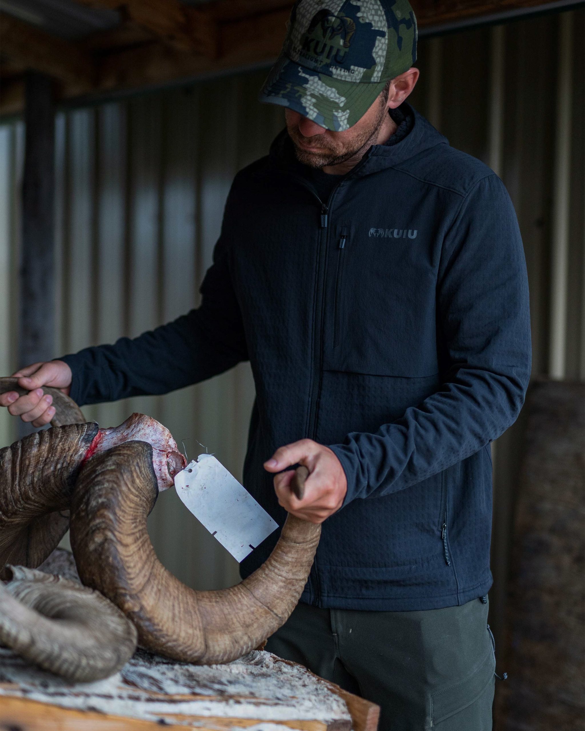 Built for your everyday expeditions. the Blockfield Fleece Hoodie is designed with a comfortable fit. ideal for layering during colder seasons. This full-zip hoodie is made from an ultra-soft fleece with a weather resistant outer face and a high-loft. grid-patterned interior. Combining its premium material with a casual. functional style. it’s water-resistant. insulating. and comfortable.