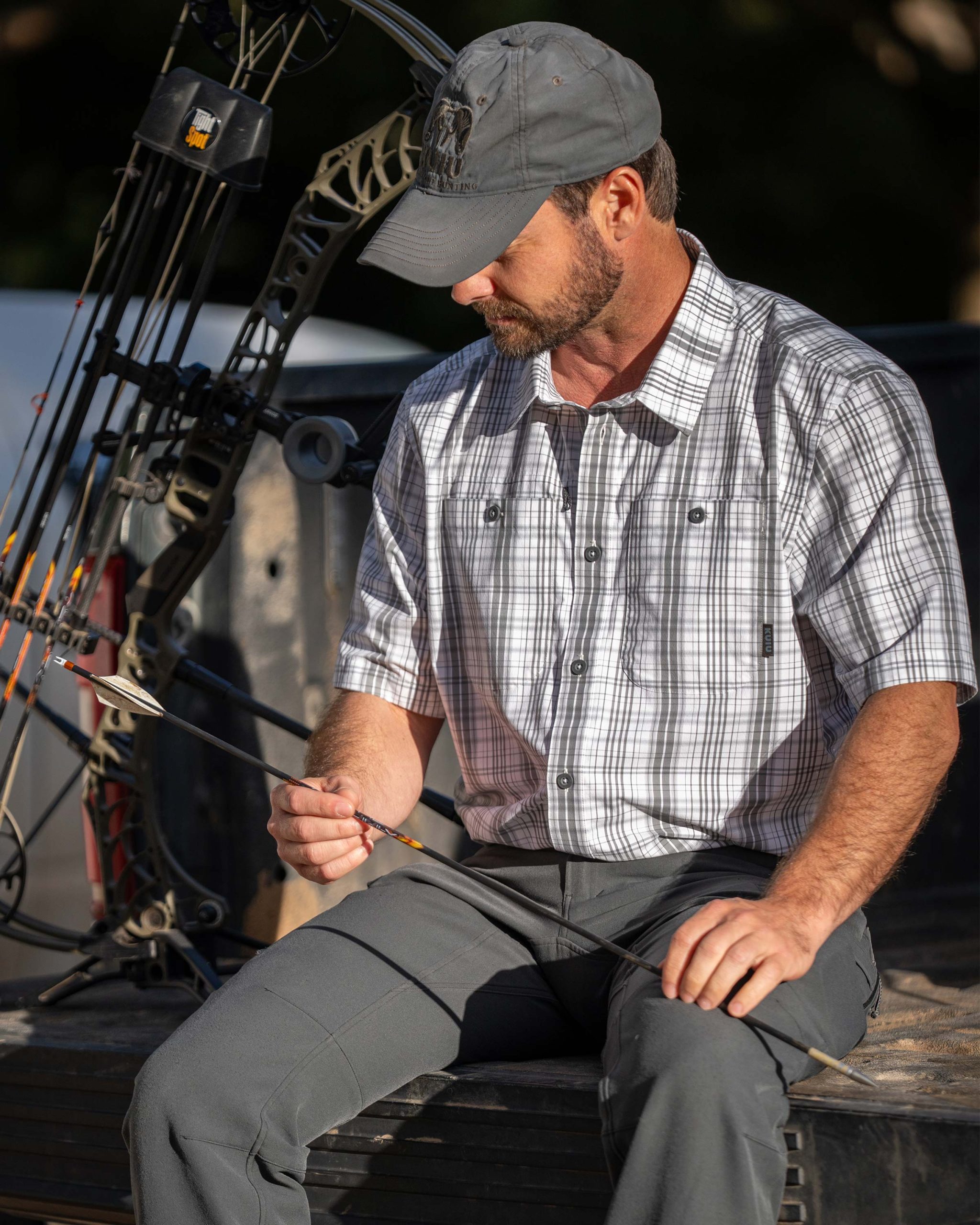 Built for your everyday excursions. this technical button-up. short-sleeve shirt features button closure chest pockets and a built-in micro-fiber lens cleaning patch. Combining an antimicrobial treatment with a nylon and polyester woven blend. you get unbeatable odor resistance and rapid moisture wicking performance wherever you go.