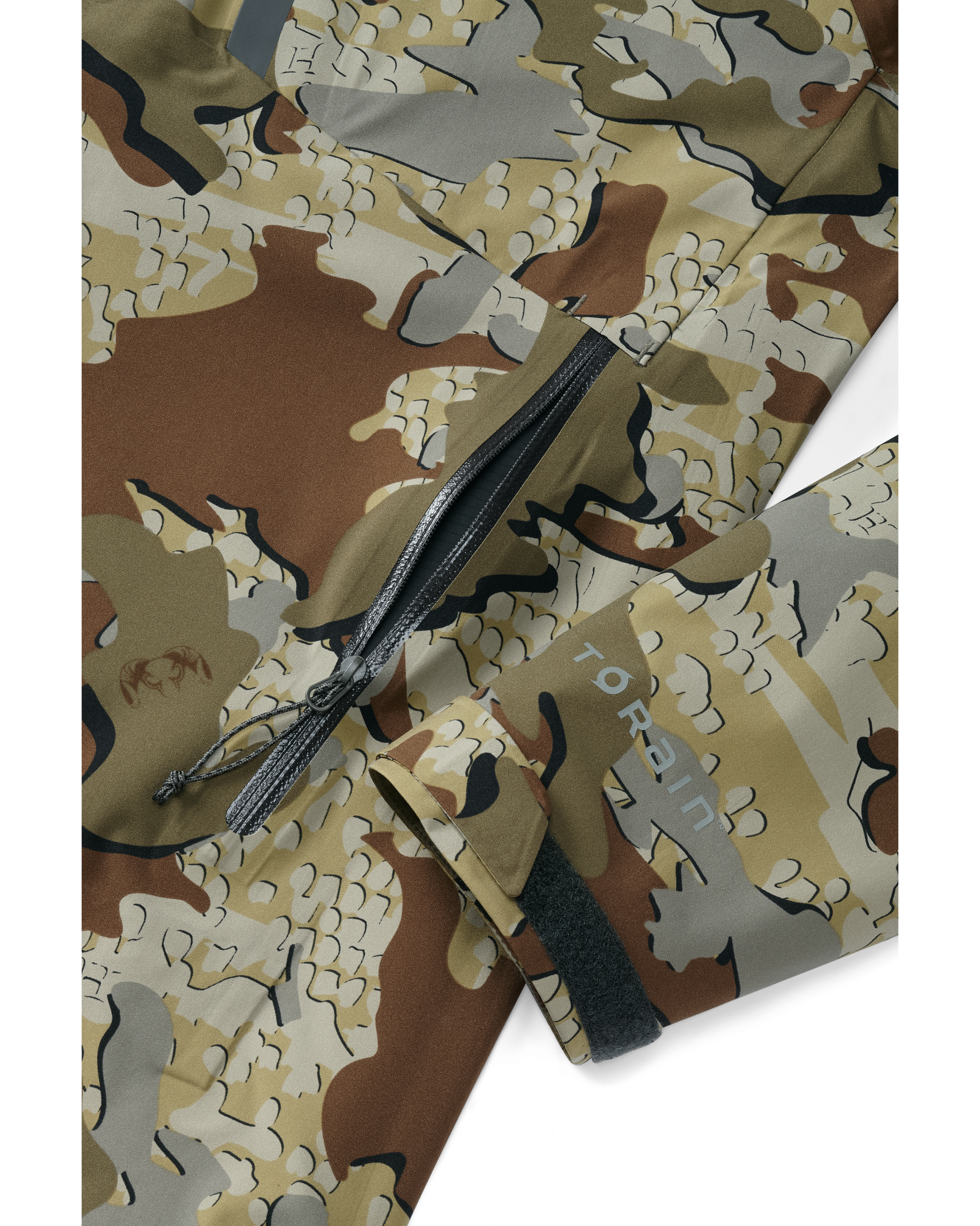 The Chugach TR waterproof rain gear system for hunting earns its keep on tough unsupported backcountry hunts when staying dry. covering miles of country. and keeping overall gear weight to a minimum are crucial. This full-featured rain jacket includes pit-zip ventilation. adjustable cuffs. a 2-way adjustable hood. and multiple zippered pockets.