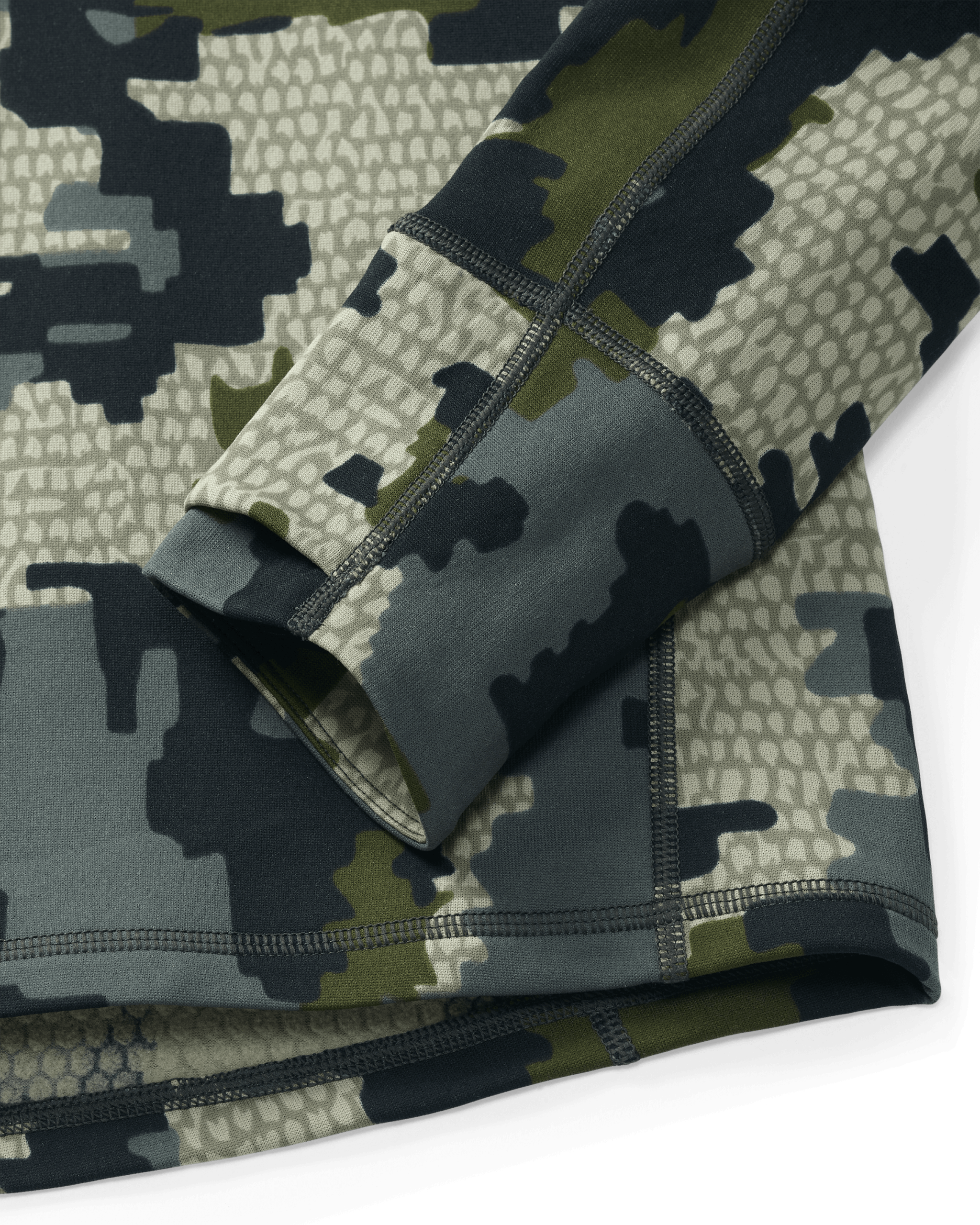 Designed with a feature set geared for whitetail hunting. the Encounter Zip-T is equipped with a drop-back hem for added coverage while sitting. raised collar for increased protection. and shaped cuff with layered thumbholes for easy layering.