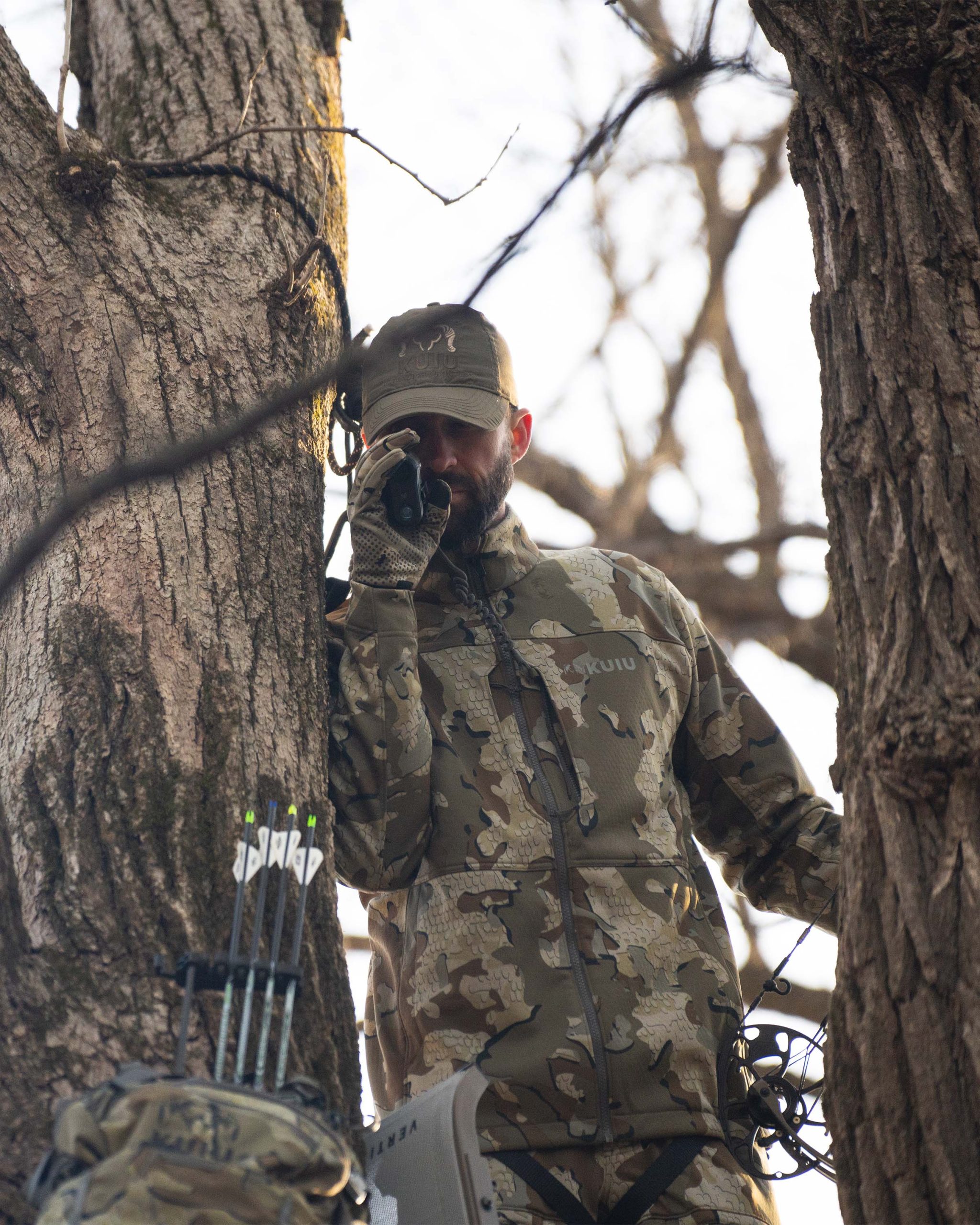 Purpose built for stand hunting in early- to mid-season conditions. this un-insulated softshell jacket is equipped with an ultra-quiet. low-sheen outer layer. with a bonded jacquard fleece interior for increased warmth while maintaining optimal breathability and temperature regulation. The jacquard fleece is not only lighter weight. but its negative space traps pockets of warm air for added comfort.
