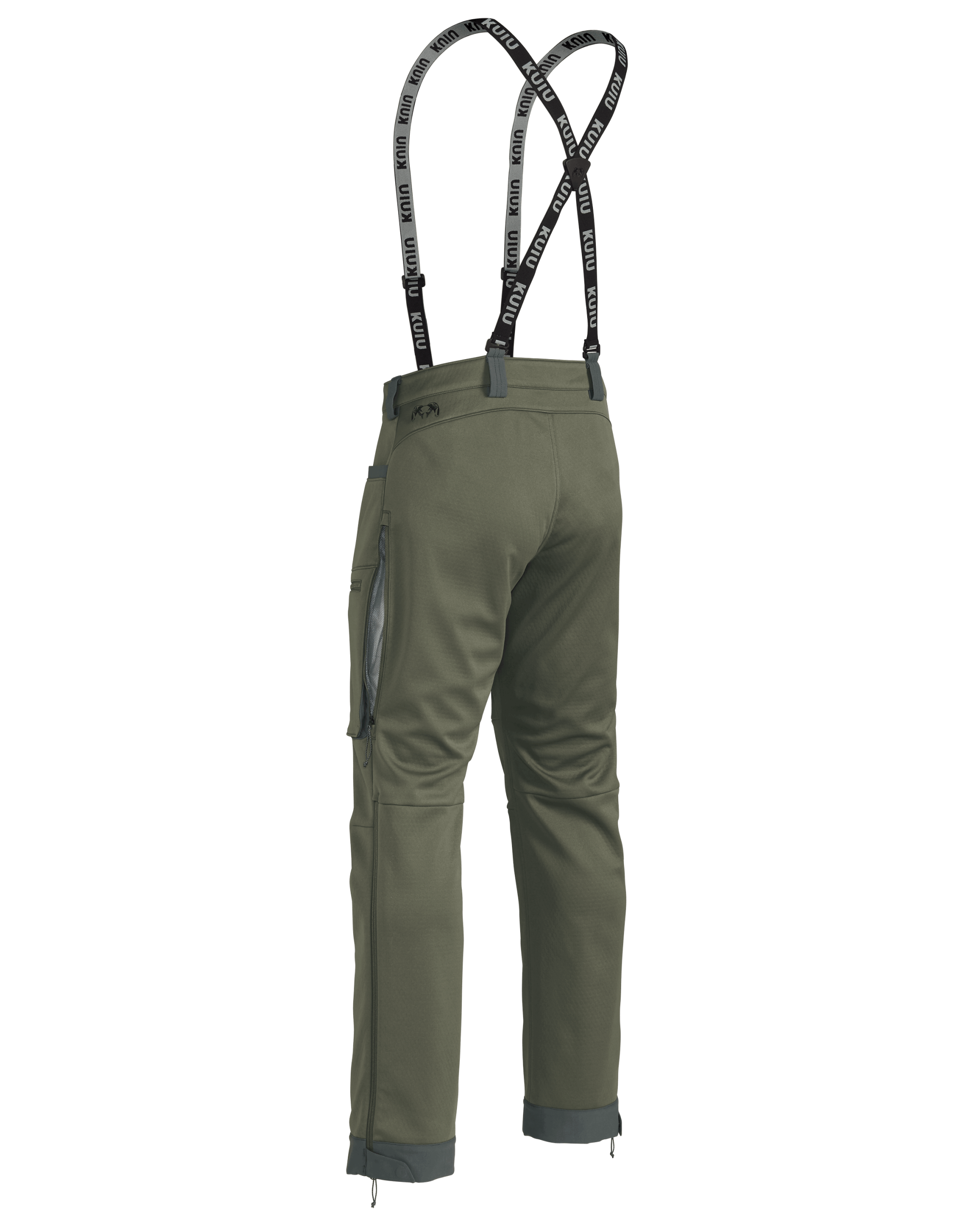 Whitetail hunting focused features include vertical entry pockets that are easily accessible while seated. fully adjustable and removable suspenders. and lower leg side zippers for easy on/off and fitting over boots. For added stealth and silence. all zippers feature quiet sliders.