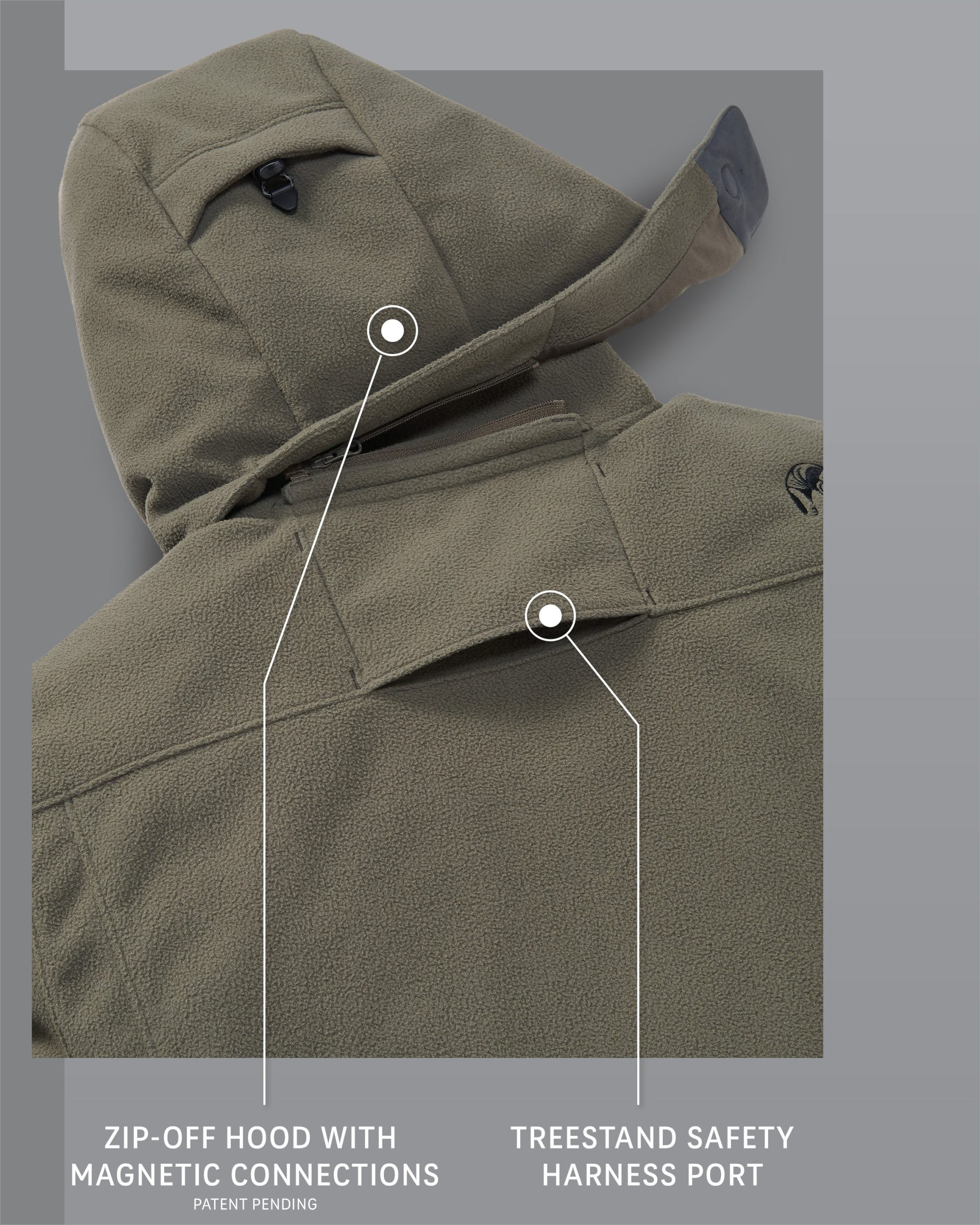 The Proximity LT is a versatile outer-layer windproof shell. uninsulated for ease of layering in mild to cold temperatures with bone-chilling wind. Engineered with purpose-driven features for stand hunting. it includes a patent-pending removable hood. safety harness port. and dual chest pockets with rangefinder connection points. Its articulated design. high-stretch fabric. and streamlined forearms allow you to shoot without interference or restricting mobility.