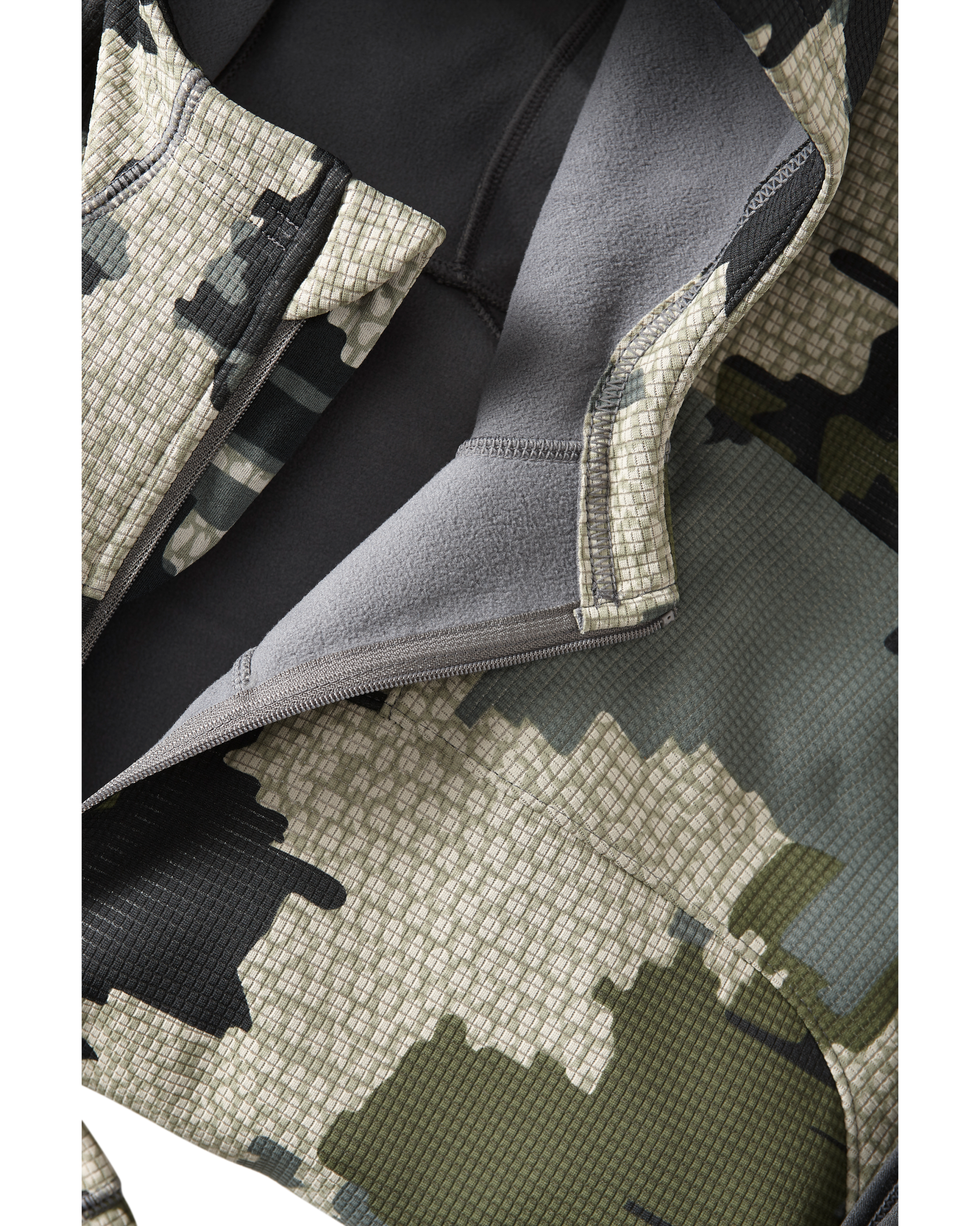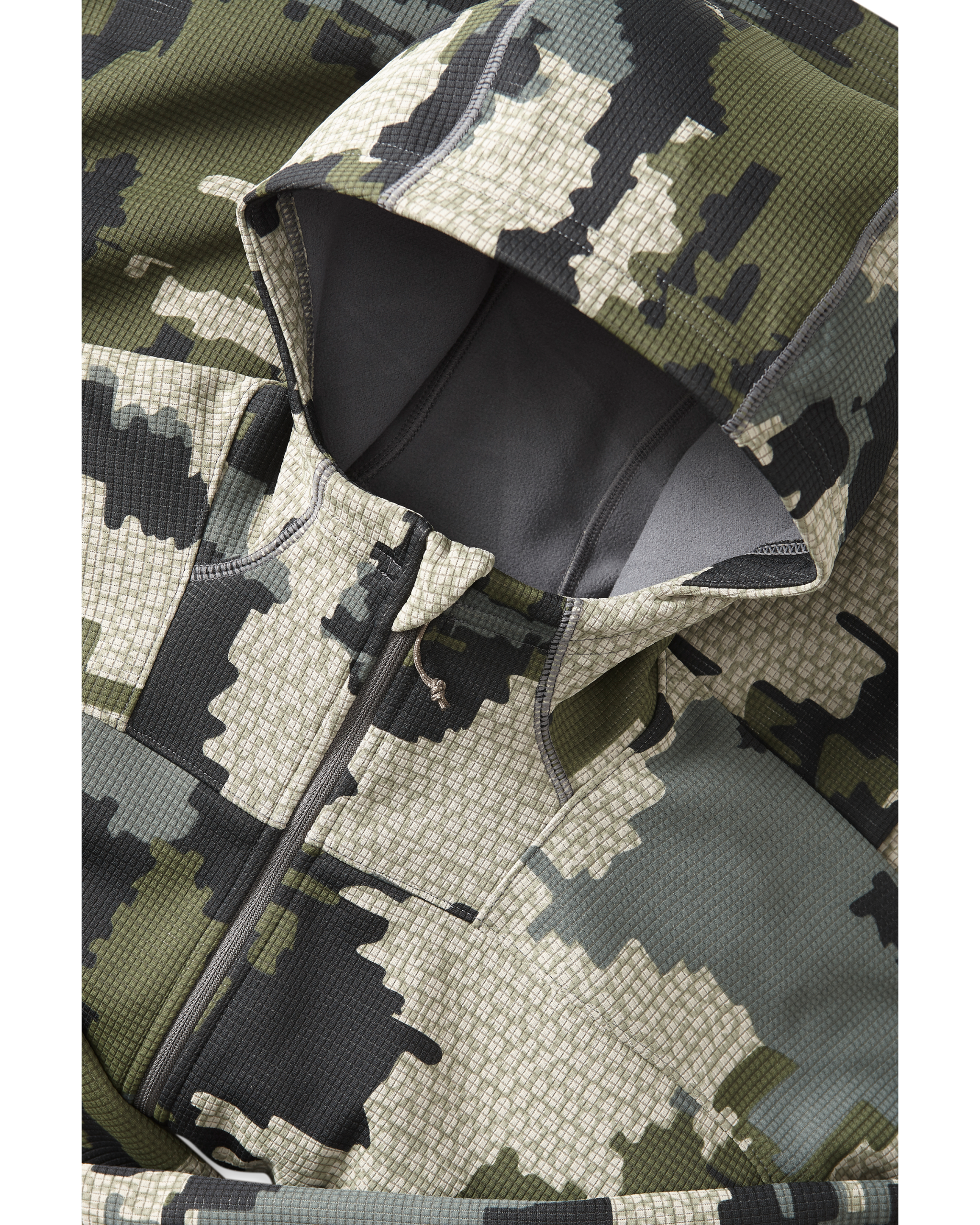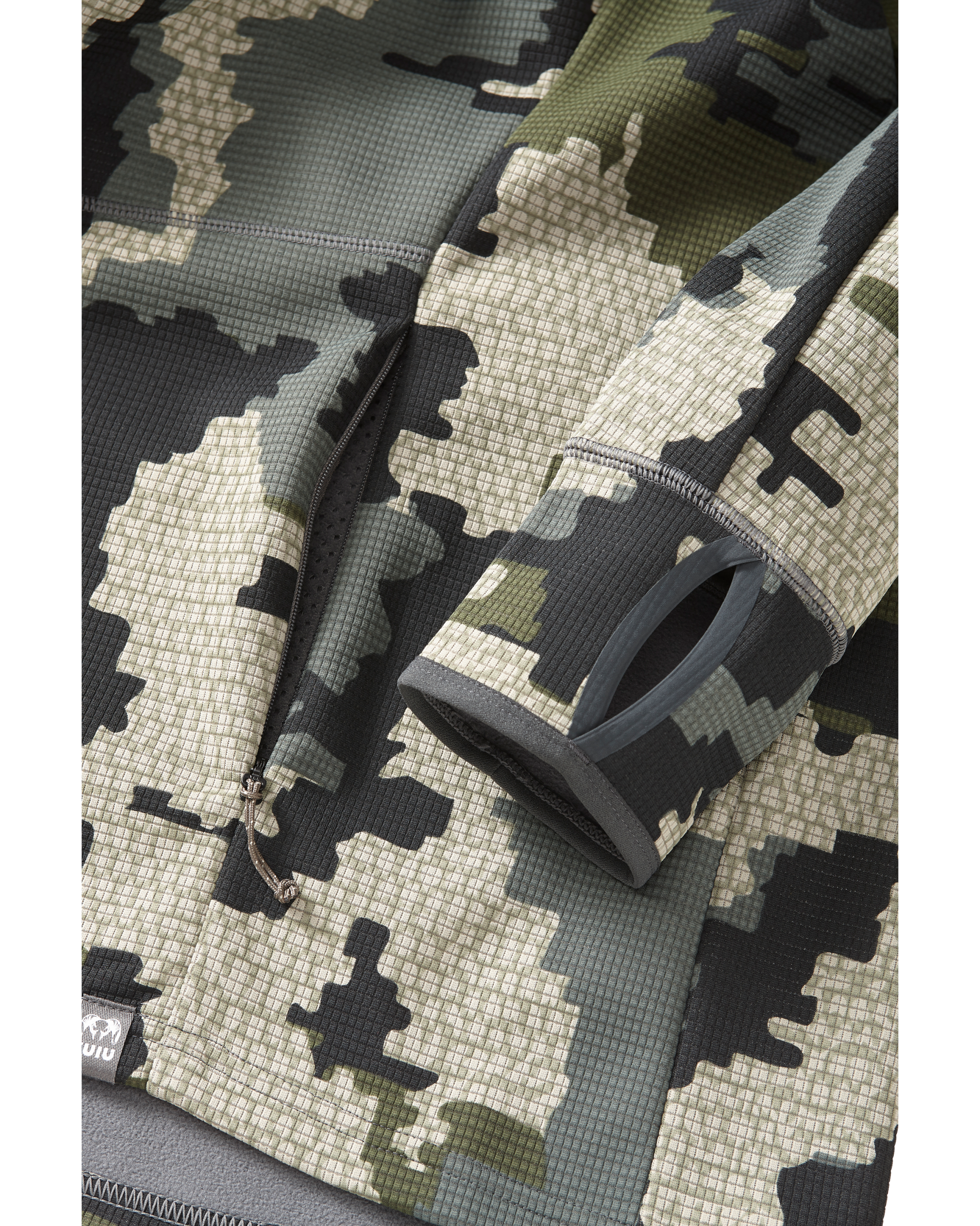Peloton 240 introduces another revolutionary Toray innovation – bonded fleece. which combines wind resistance. stretch. and softness. The hydrophobic nature of the fabric wicks moisture away from your skin so it can quickly evaporate. keeping you dry. The full zip design features pockets and thumbholes. while keeping the weight down to a minimum. with a hood to provide better concealment and warmth. Wear as a mid-layer under your raingear or as a primary outer layer in dry conditions.