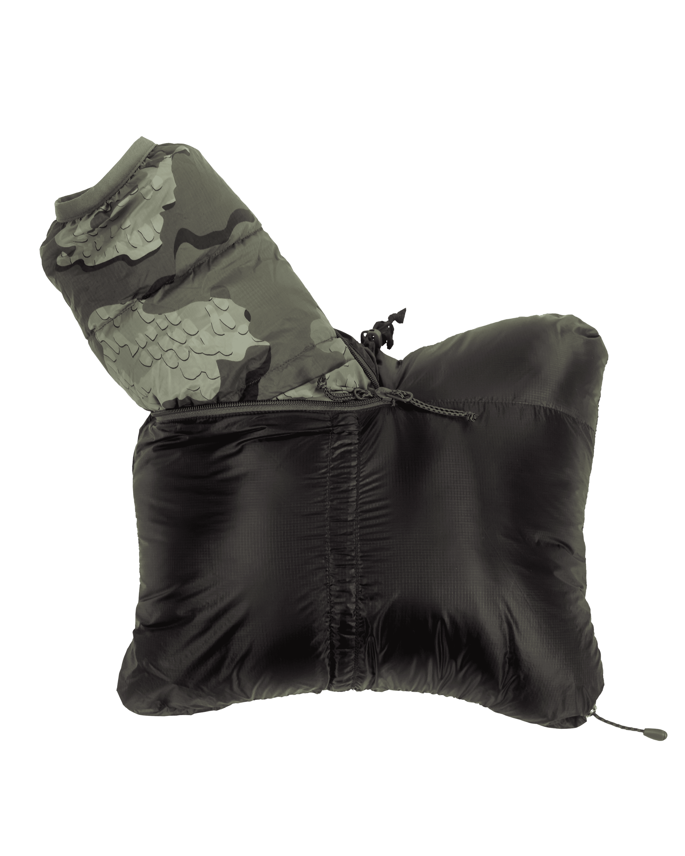 The Super Down LT is sized with a mid-layer fit. so it comfortably layers over a base layer and mid-layer fleece. yet it’s trim enough to layer under our rain gear in the same size. The jacket features a new two-stage packability system. It self-stows in the right-hand pocket. with enough room to also stow the Super Down LT Pant. In this configuration it doubles as a comfortable camp pillow. If pack space is limited. a secondary cinch can be used to compress the jacket to half the stowed size.