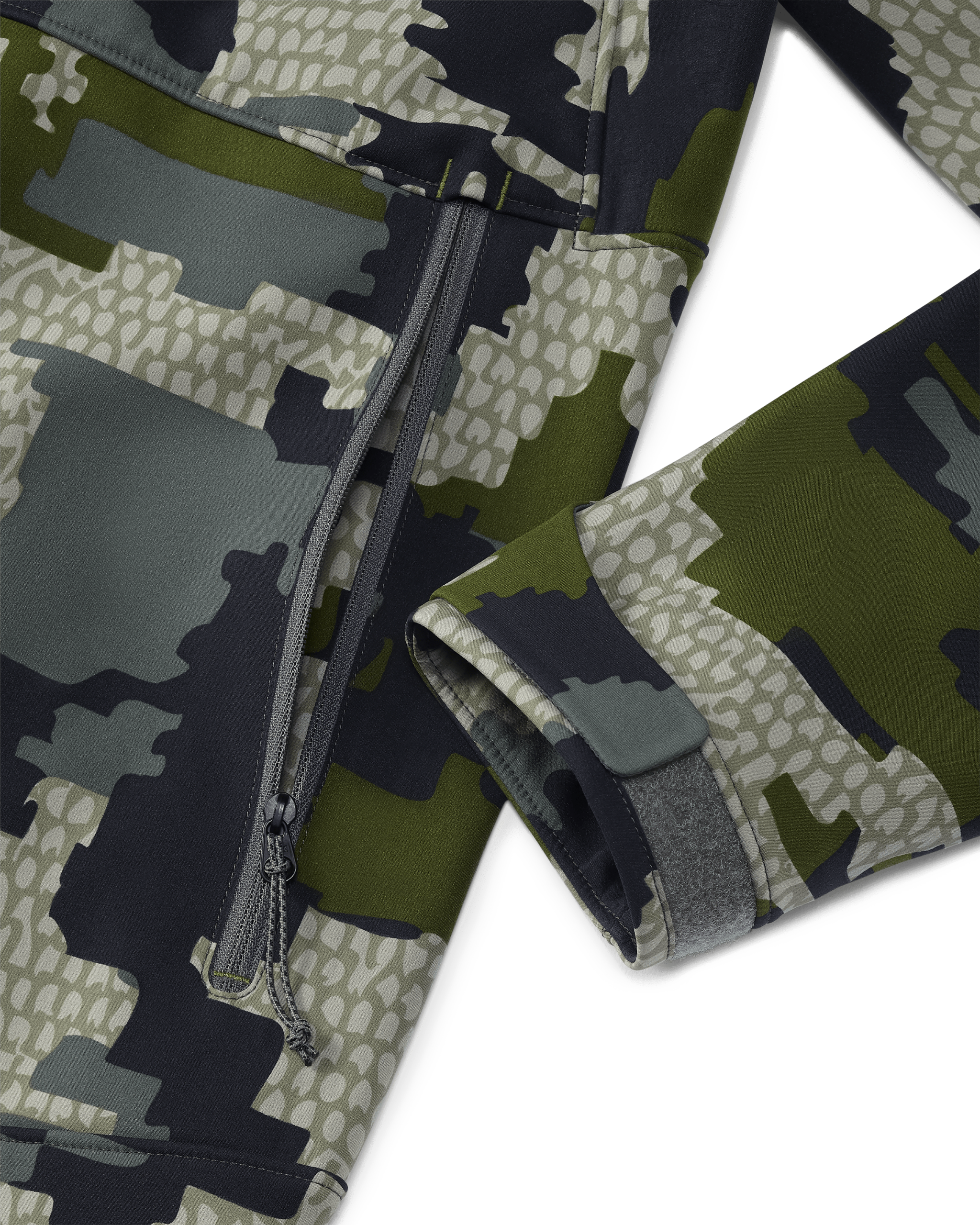 With the woman mountain hunter in mind. we optimized and fine-tuned every feature. including dual chest pockets with an added accessory lanyard connection point. zippered pit vents for thermoregulation. and a two-way adjustable storm hood that can be cinched back on either side and worn up while shooting. In addition. an adjustable hem cinch blocks out wind. and raised hand pockets stay accessible while wearing a pack.