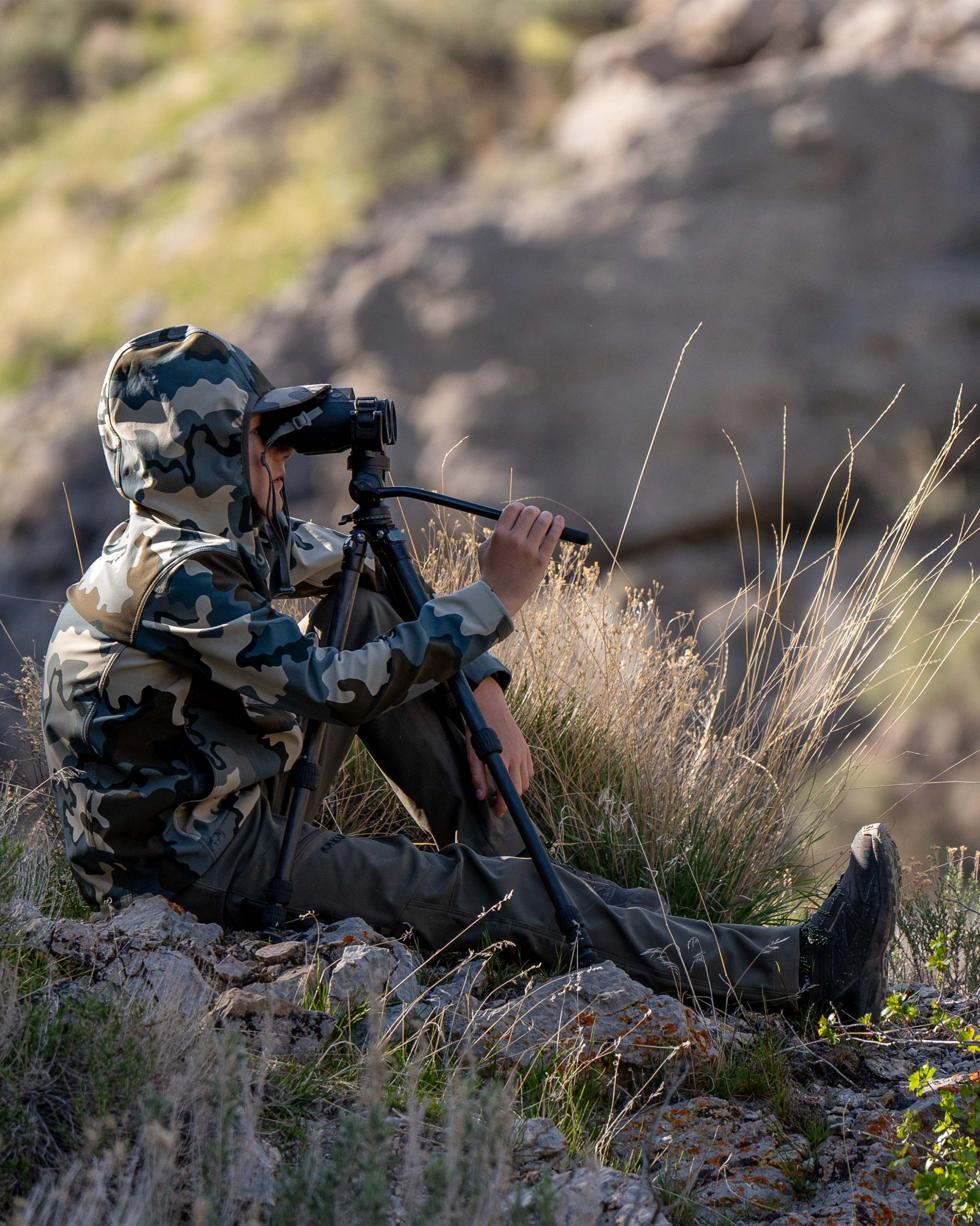 The Trailblazer features a bonded two-layer soft shell fabric. The outer layer is made from a tightly woven. durable. and snag resistant polyester that remains quiet in close encounters. while the inside features a comfortable. insulating. and moisture wicking micro fleece.